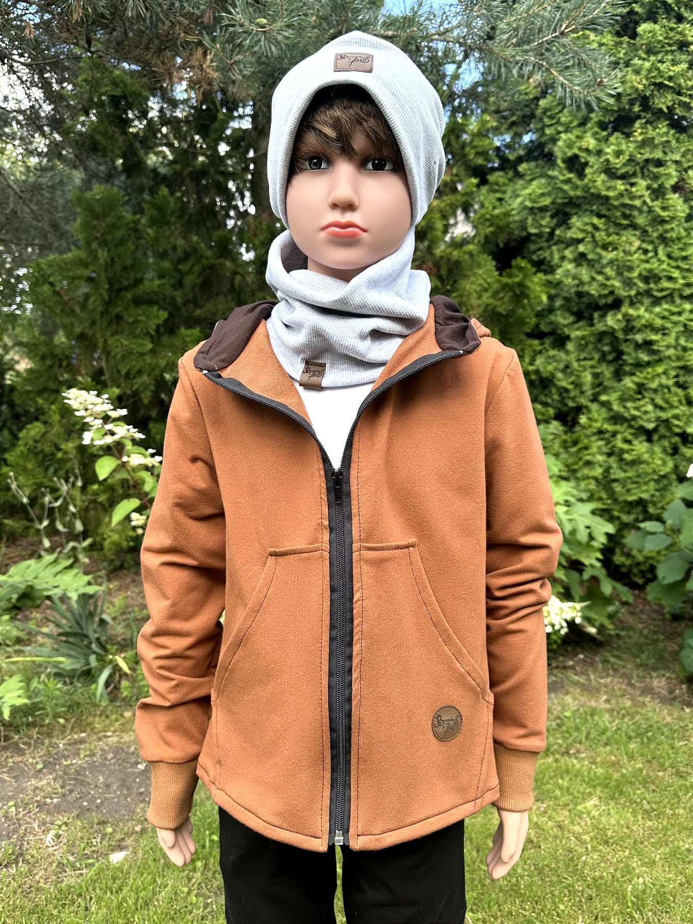 Ciepła i wygodna bluza dziecięca z kapturem w odcieniu karmelowego brązu. Ręcznie szyta z dresówki pętelki.