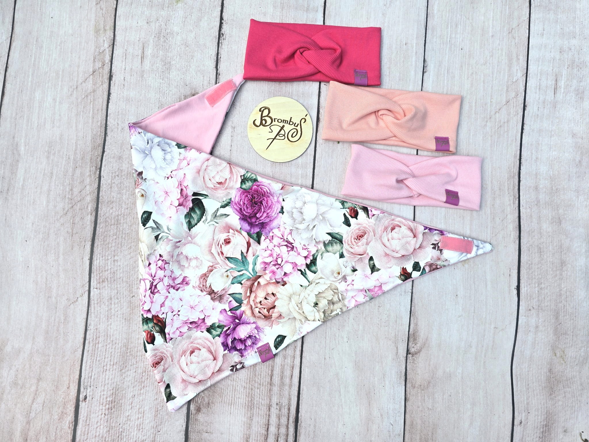 Chusta dziecięca trójkątna – różane bukiety i pudrowy róż