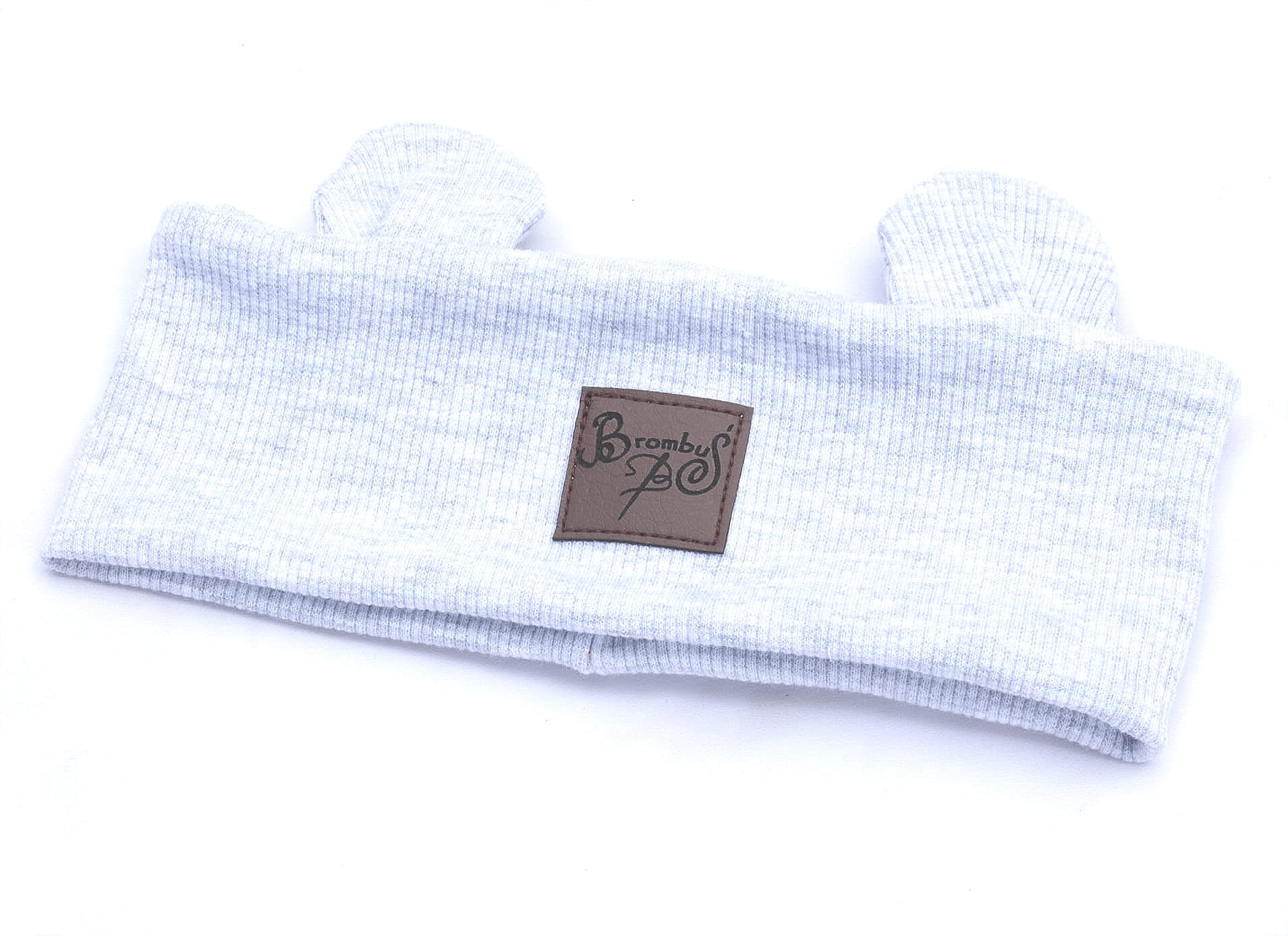 Ręcznie szyta opaska z uszkami w jasnoszarym kolorze. Elastyczna, wygodna i urocza – idealna dla najmłodszych.