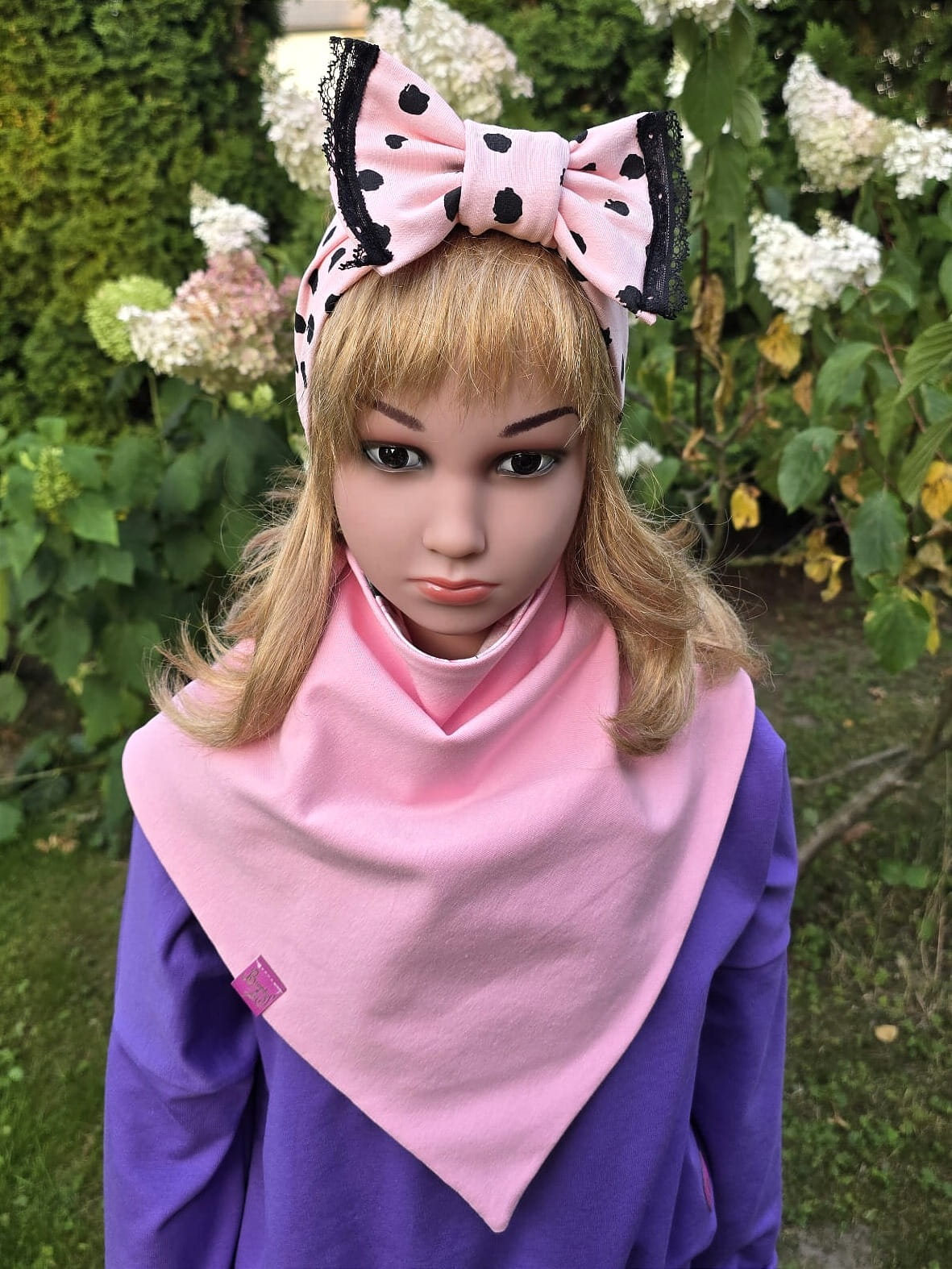 Opaska w groszki doskonale komponuje się z chustą na szyję dostępną w naszej ofercie – razem tworzą spójny i uroczy zestaw.