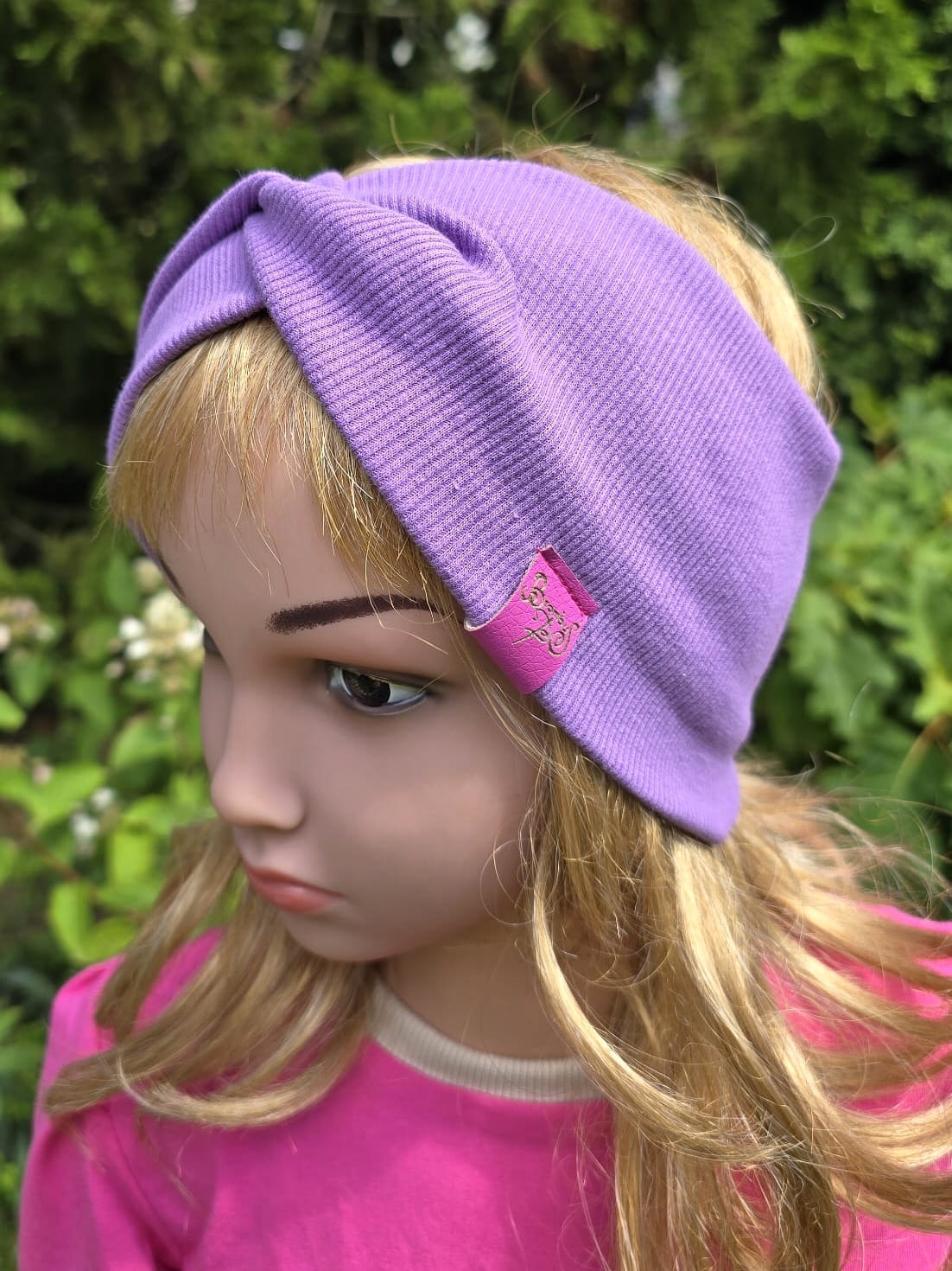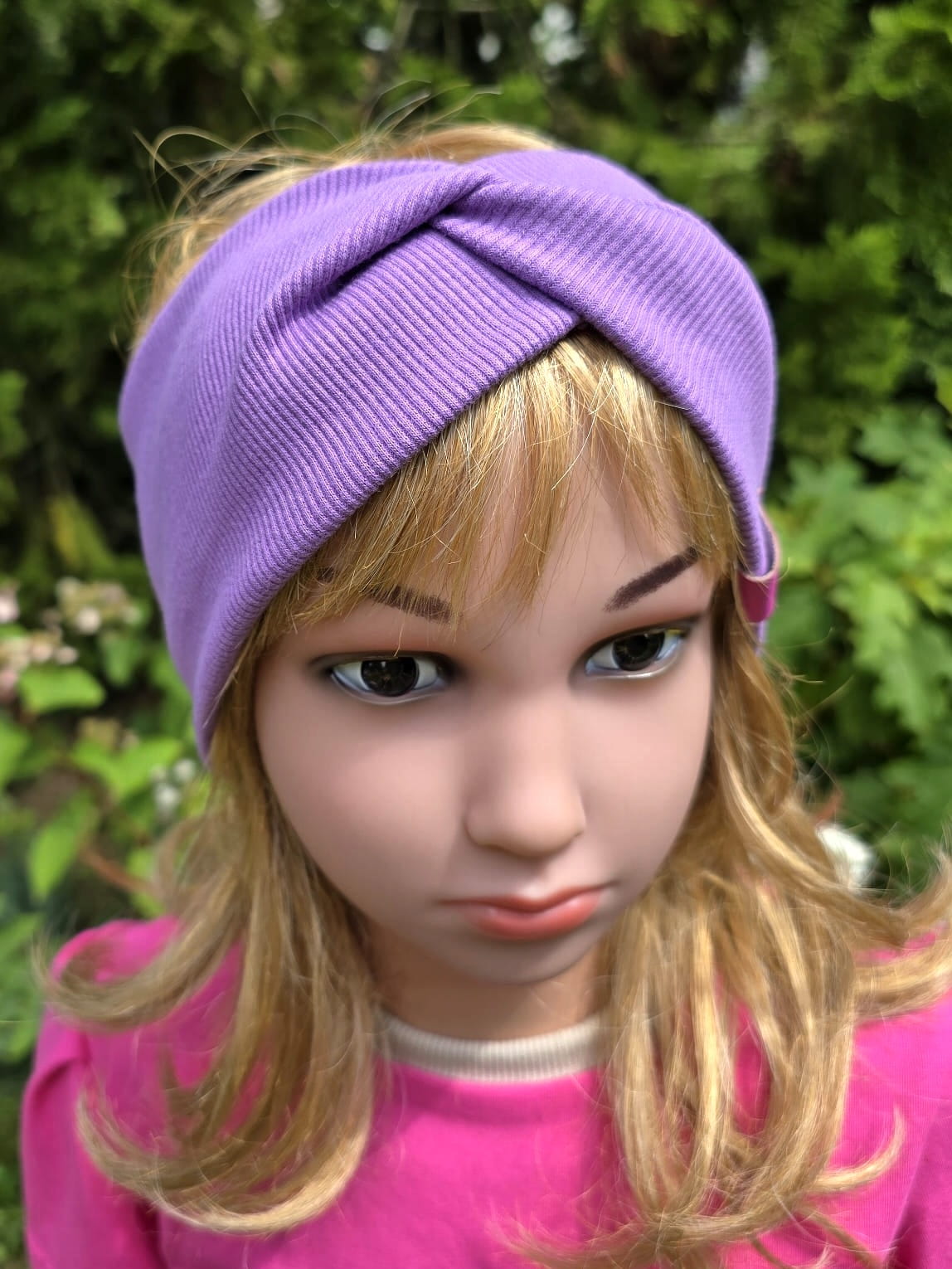 Dziewczęca opaska turbanowa w kolorze fioletowym. Miękka, elastyczna i idealna na każdą porę roku.