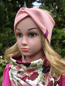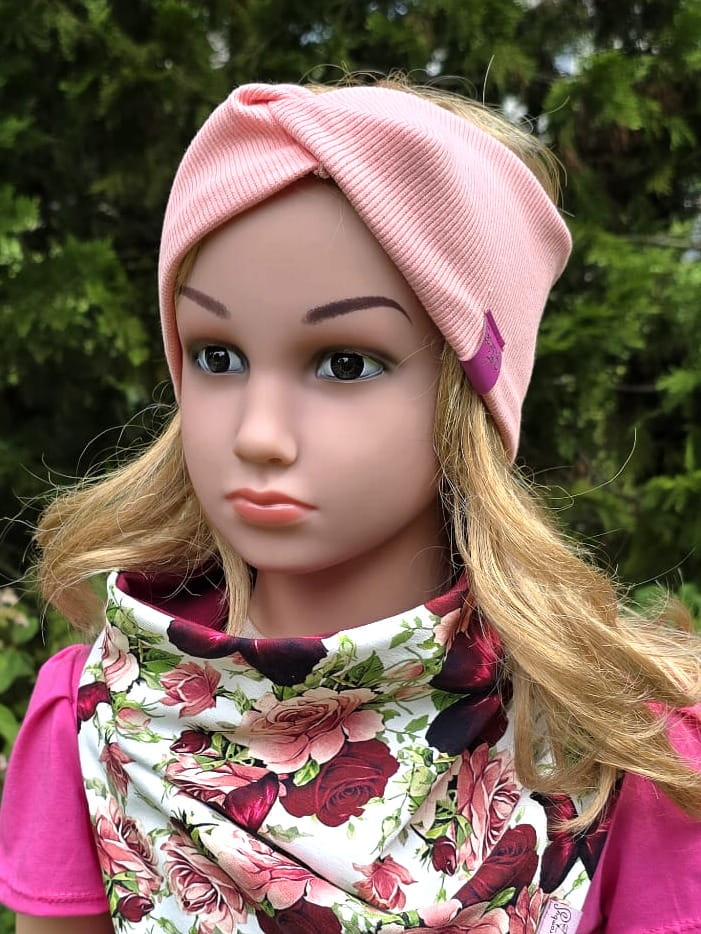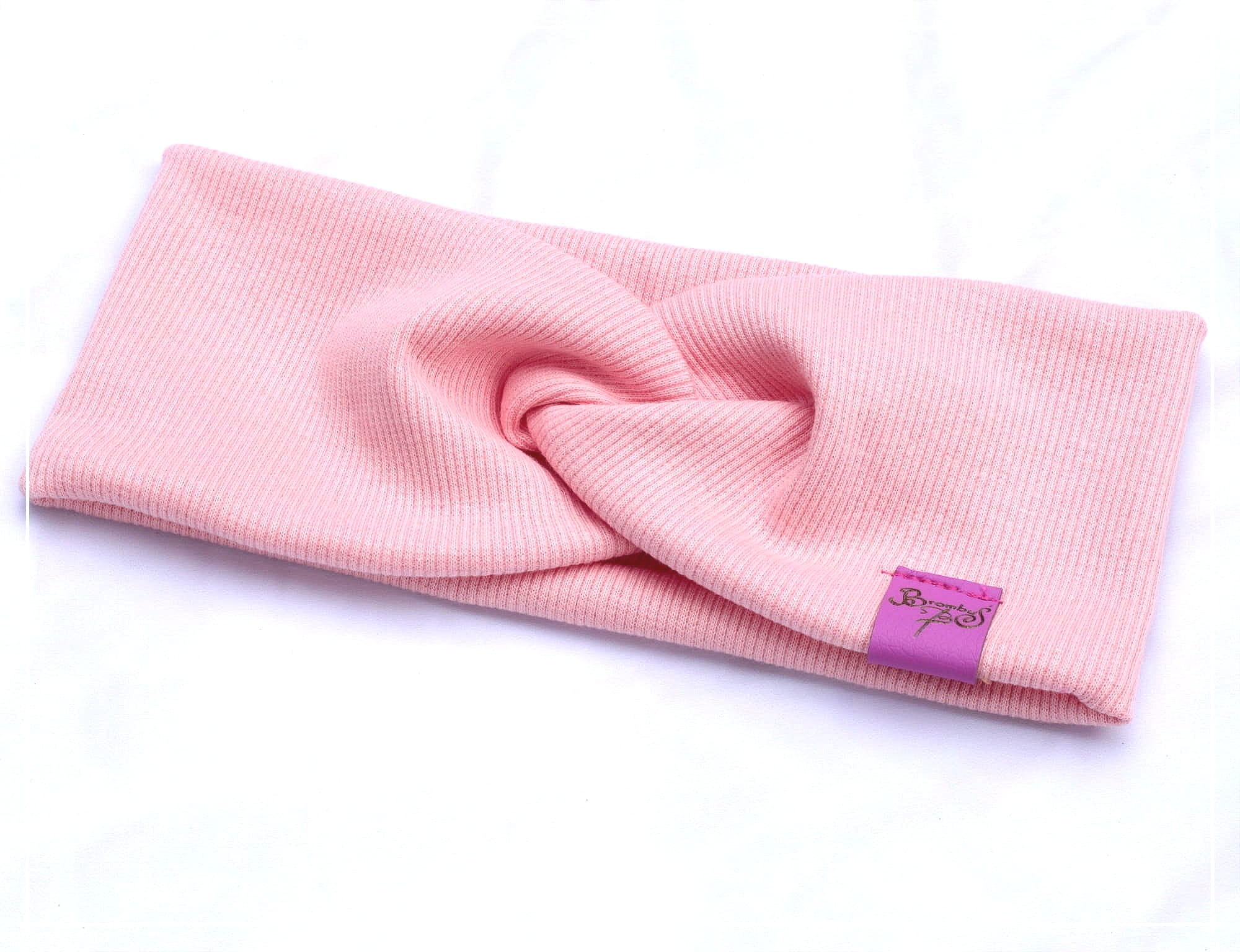 Ręcznie szyta opaska z prążkowanej dzianiny w odcieniu pudrowego różu. Elastyczna, miękka i wygodna.