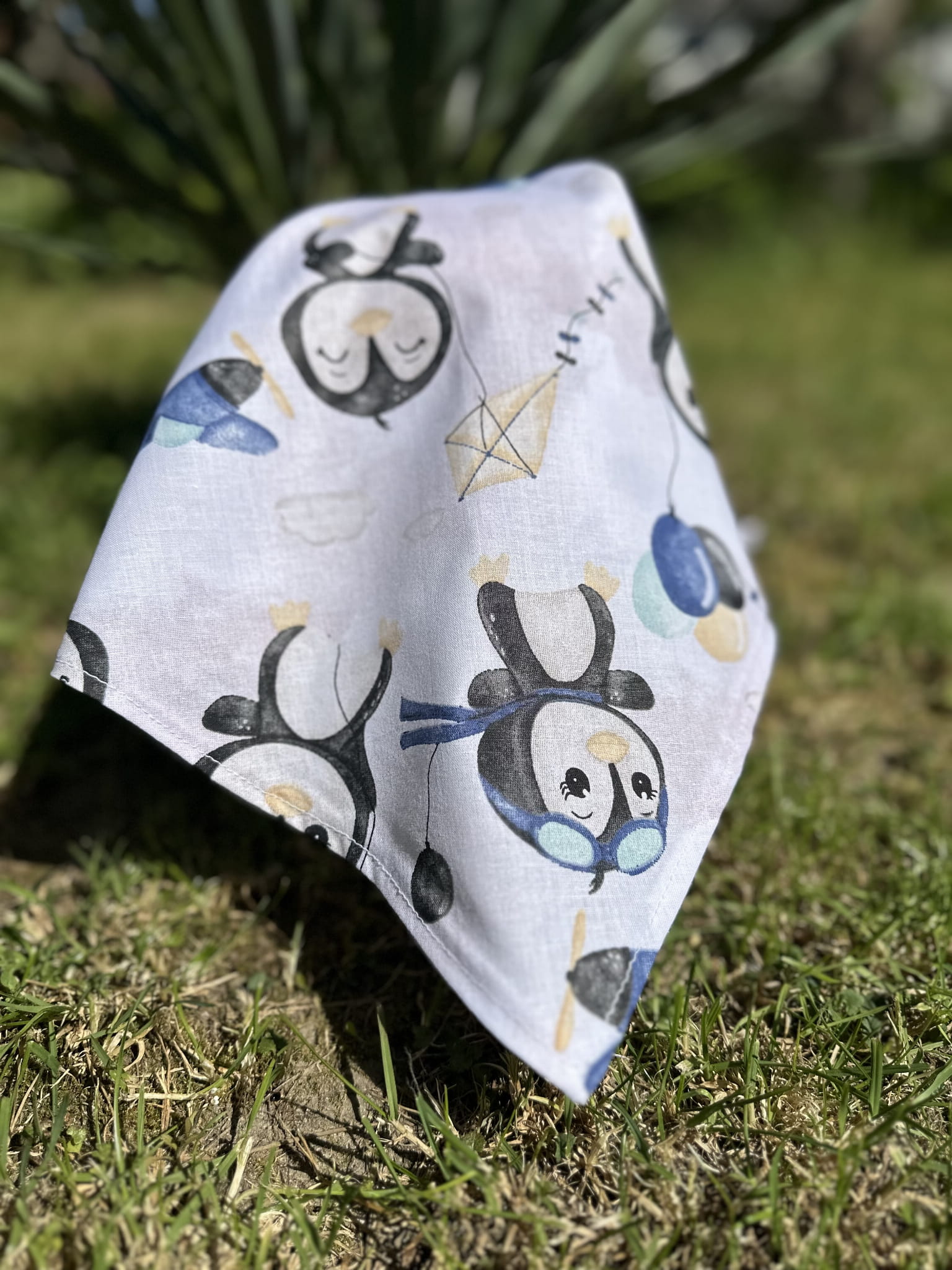 „Latający Pingwin” – Chusta z daszkiem handmade (1)
