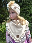 Kremowa chusta dziecięca z ozdobną falbanką, idealna na chłodniejsze dni i jako elegancki dodatek do garderoby.