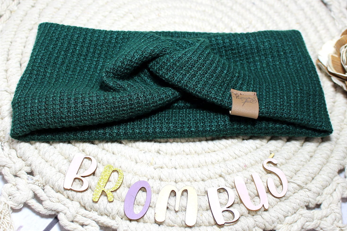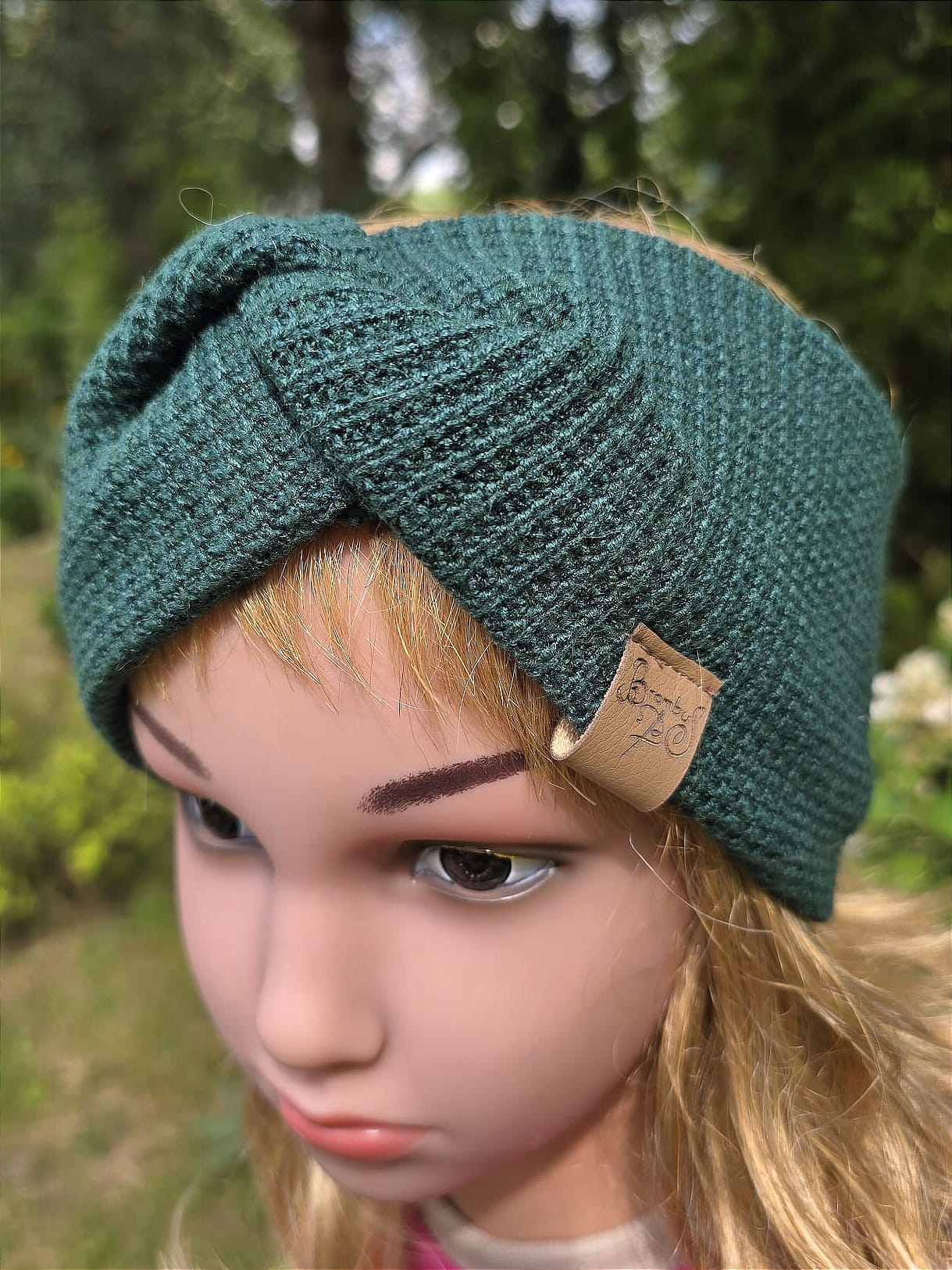Wykonana z wyjątkowo miękkiej i przyjemnej dzianiny sweterkowej, jest idealnym wyborem zarówno dla dziewczynek, jak i kobiet. Jej piękny butelkowo zielony kolor doda subtelności i wdzięku każdej stylizacji. Dzięki wysokości 11 cm opaska doskonale się układa, otulając głowę w sposób naturalny i wygodny.