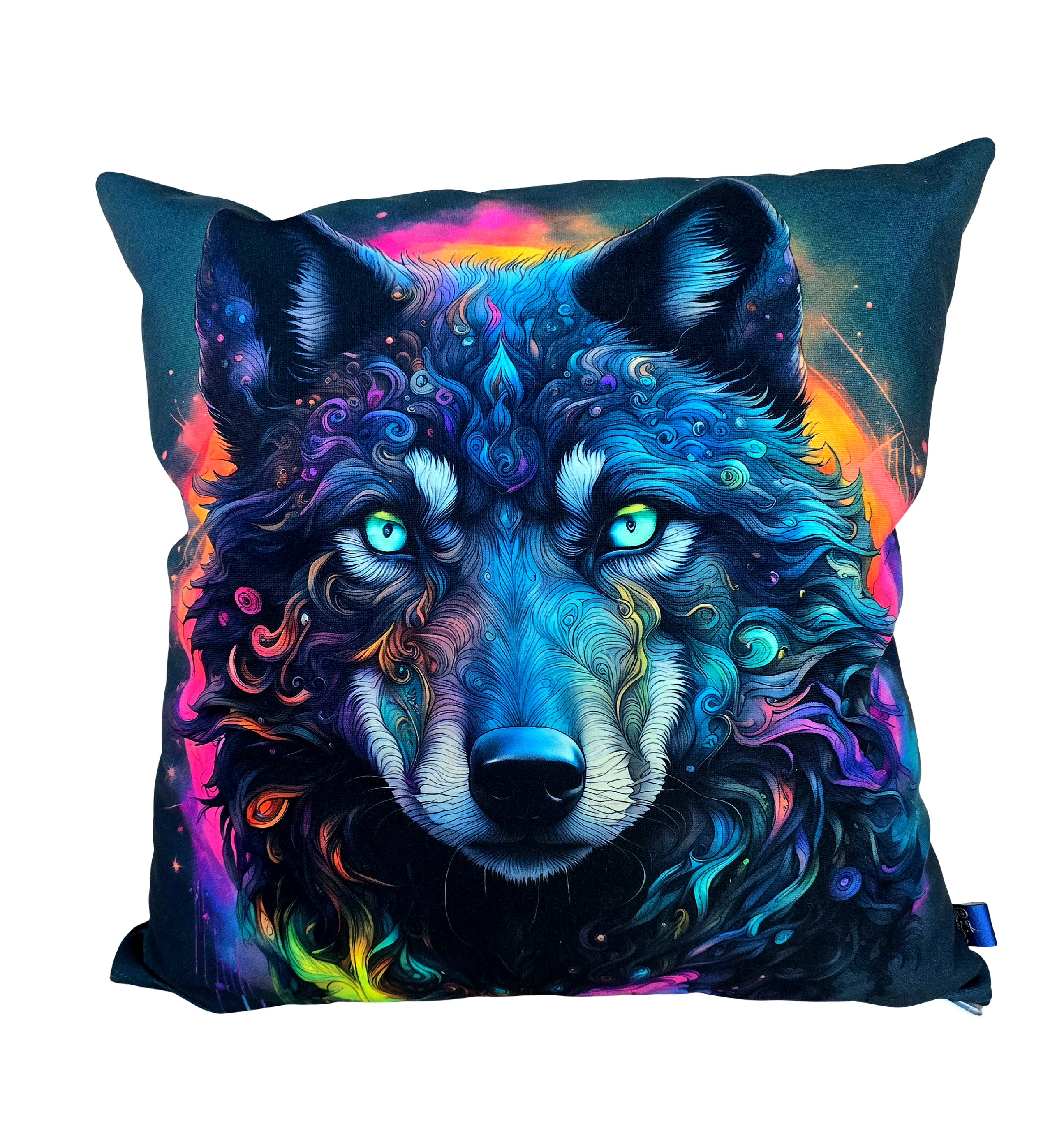 Dekoracyjna poszewka na jaśka z artystycznym motywem wilka w intensywnych, nasyconych kolorach. Idealna dla osób, które lubią wyrazisty styl, odważne dodatki i wnętrza z charakterem. Świetnie sprawdzi się jako mocny akcent dekoracyjny w salonie, sypialni lub pokoju młodzieżowym.