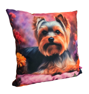 Poszewka dekoracyjna na jaśka – Yorkshire Terrier w eleganckiej, kwiatowej odsłonie