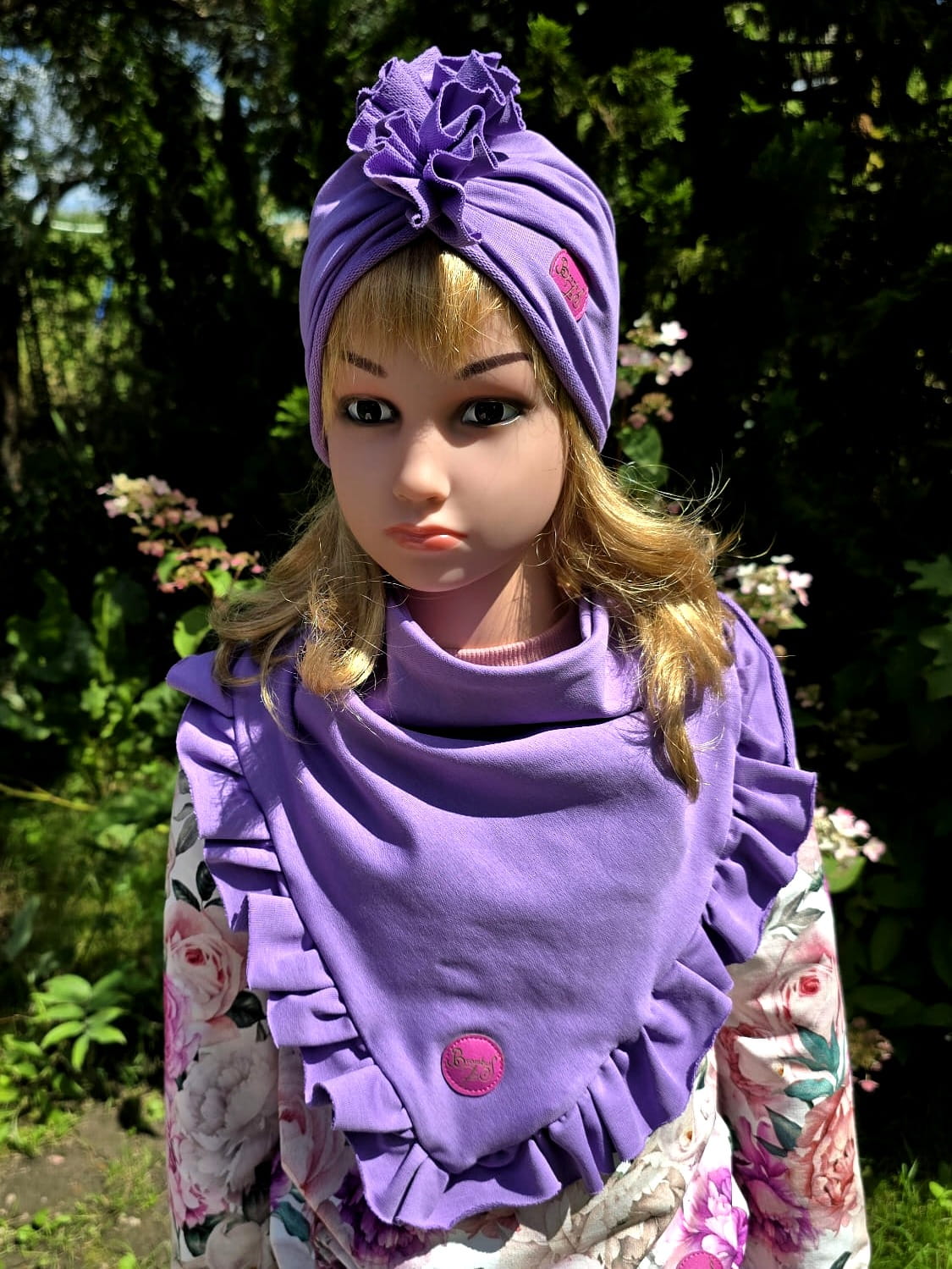 Turban dziecięcy w kolorze fioletowym to połączenie elegancji i wygody. Wykonany z wysokiej jakości dzianiny bawełnianej z dodatkiem elastanu, doskonale dopasowuje się do głowy dziecka, nie uciska i zapewnia komfort noszenia. Ozdobne marszczenie nadaje mu wyjątkowego charakteru, a fioletowy odcień pięknie komponuje się z różnymi stylizacjami – zarówno codziennymi, jak i okazjonalnymi.