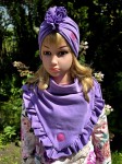 Turban dziecięcy fioletowy z ozdobnym marszczeniem