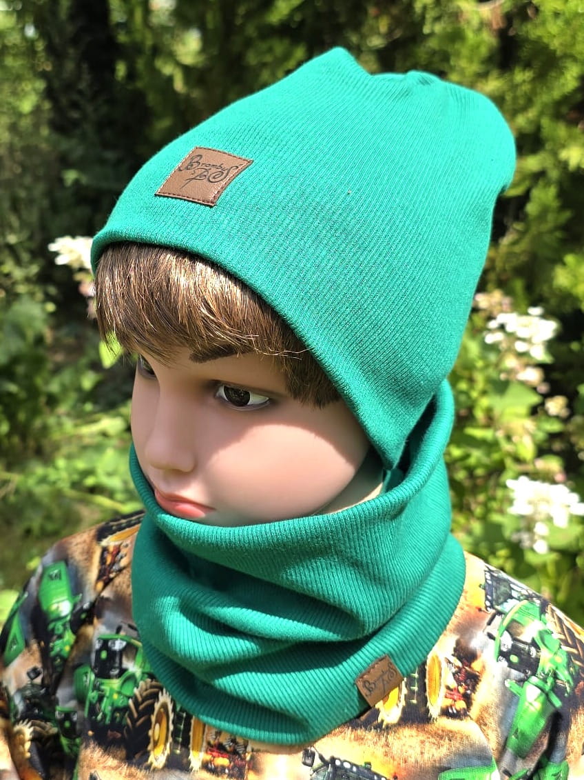 Wygodna czapka dziecięca z miękkiej dzianiny prążkowanej w intensywnie zielonym kolorze. Idealna na chłodniejsze dni.